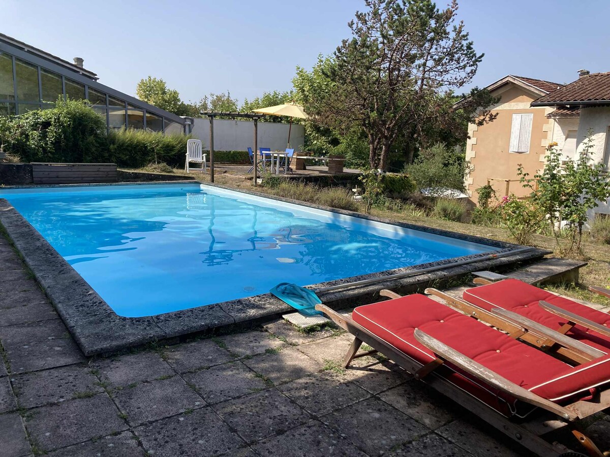 Located in our property of more than one hectare on the banks of the Garonne, our guest house, independent, 48 m2, surrounded by trees, facing the pool, offers you calm, charm and serenity. It is pleasant in all seasons. You will be only 15 minutes from the center of Bordeaux and close to many tourist and sports sites and of course the great vineyards. Arcachon Bay and Dune du Pyla are 45 minutes away.