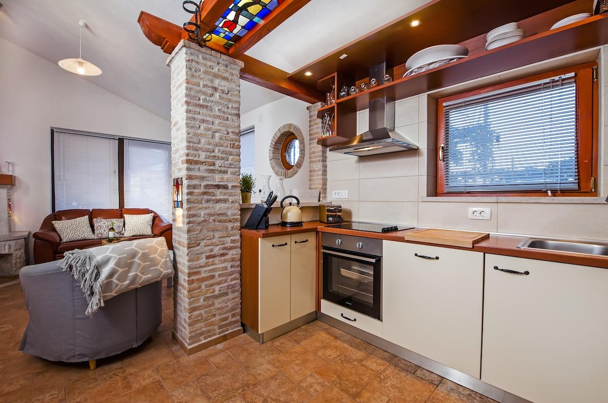 Holiday home Bukovac is located 3 km from the city centre and many supermarkets, 4 km from the nearest beach. This house consists of the two bedrooms, one bathroom and the kitchen with the living room. There is a BBQ in front of the house on the big terrace with the sitting area. There is an outside shower and parking place. You can enjoy the swimming pool with the salt water electrolysis device and the deckchairs. The neighbourhood is safe and tranquil. This house fits up to 4 people.