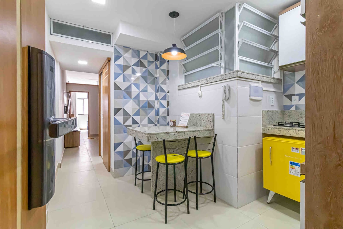 We offer a portable crib at no additional cost and a parking space for rentals of 10+ days! Modern design in a prime area, with high standards and 24-hour security. Extremely clean and organized apartment. Newly renovated and decorated, providing an atmosphere of peace and tranquility. Well-lit, airy and comfortable. Living room, dining room, double en-suite with queen-size bed, bathtub and office, bedroom with two single beds, guest bathroom with shower, bath amenities and full kitchen.