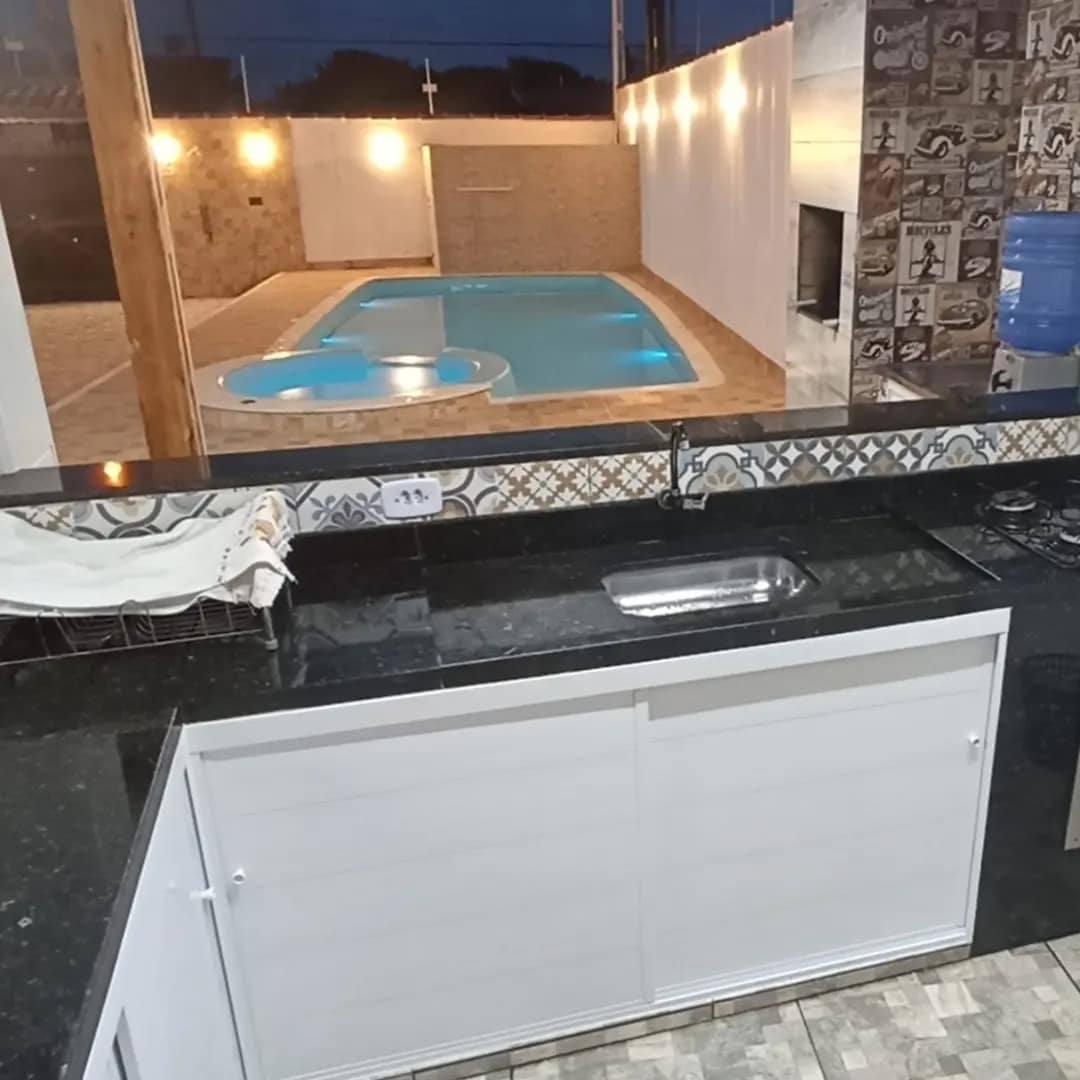 Welcome to our property. Triplex, facing the sea, quiet neighborhood, calm beach, excellent location for families. Our space offers a beautiful swimming pool, charcoal barbecue with a hood for a perfect barbecue. In the outdoor area, we have a deck chair, table, sofa and benches for comfort in the wet area. A fully equipped kitchen, modern furniture to ensure a great stay.