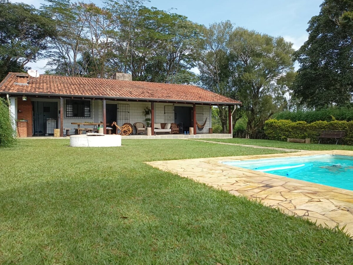 Experience unforgettable moments in this unique place, ideal for families. A charming and spacious place, with a tree house, chickens and cows decorating the scenery, a soccer field, fruit trees and a vegetable garden, a cozy outdoor kitchen, and a swimming pool. The accommodations are divided into 4 external suites, and a main house, with 3 bedrooms. There's plenty of room for family and friends. Ideal for relaxing in the best climate, a place with simplicity and comfort.