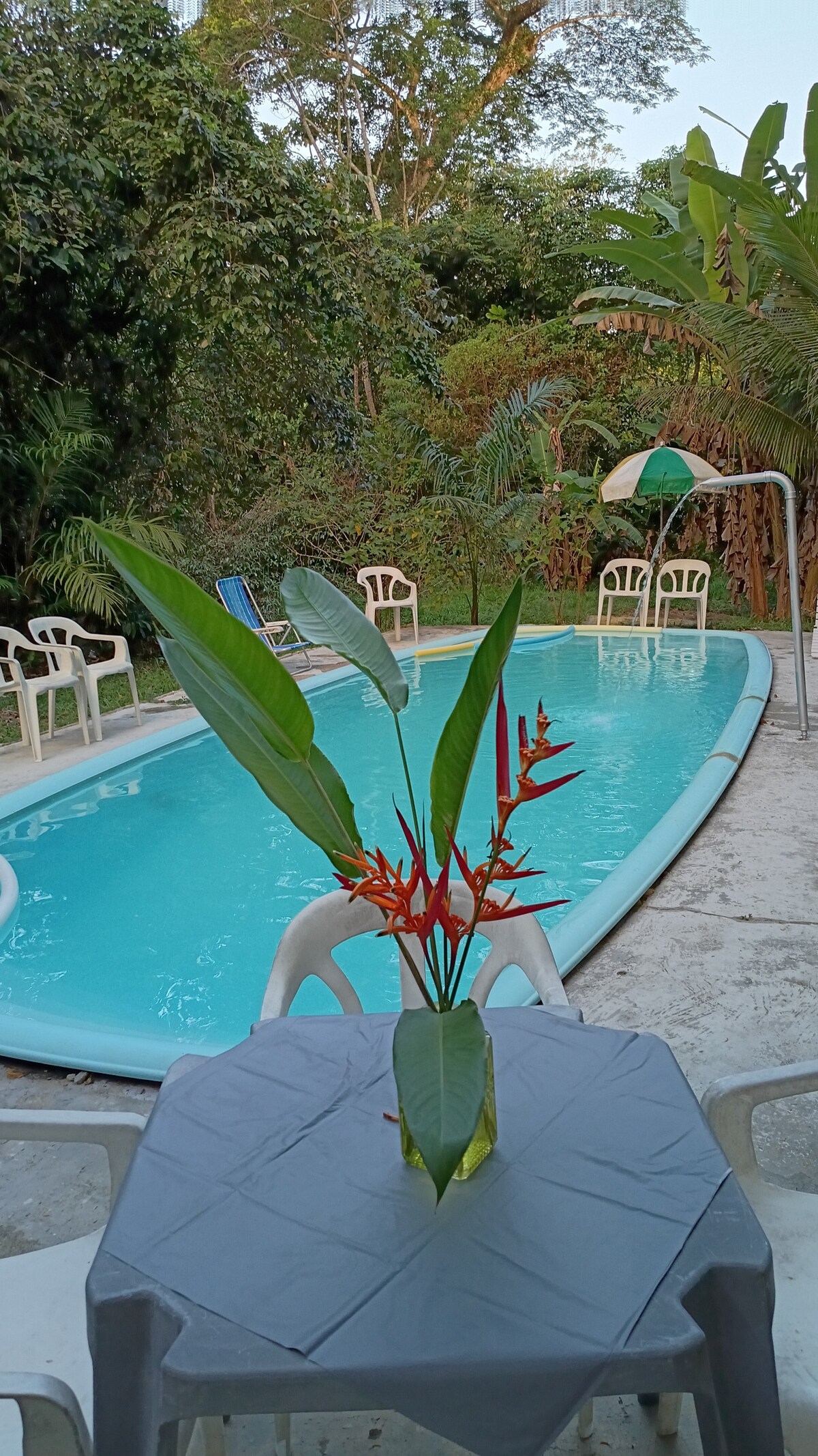 Relax with the whole family at this peaceful place to stay. Spend the day at Guarau Beach (3 km - 10 min) or Cachoeira do Paraiso (10.6 km) or Barra do Una (16.4 km) and rest in an environmental reserve! We have a mini trail, a lake, a natural pool, a century-old fig tree, a large space with a barbecue, native forest, a wide variety of birds and flowers. We accept pets. We do not provide bed linen and towels.