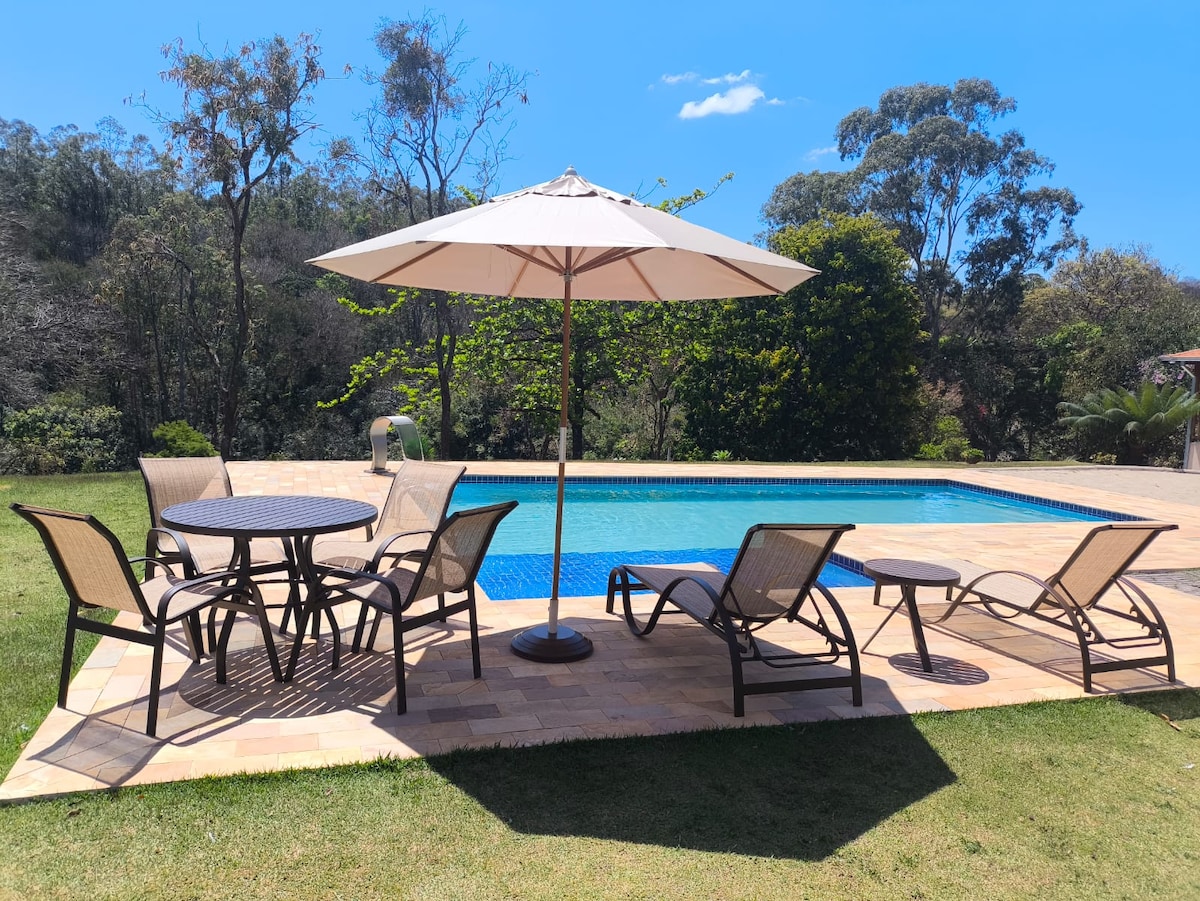 Chácara located 90 km from the capital city of São Paulo, ideal for receiving family. We do not book for parties. 2 bedrooms (1 double bed, 2 single beds and 1 extra mattress in each room) with only COLD air conditioning. Spacious and comfortable room. Kitchen with a stove , fridge, microwave and household items. Grill, freezer. Swimming pool is NOT HEATED and is 2.60 m X 12.00 m. Play hall with billiard , fobolim and carteado. Campfire Area with Wonderful View!
