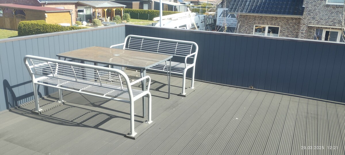 Erleben Sie Entspannung pur in unserer frisch sanierten Ferienwohnung mit großzügigem Wohn- und Essbereich. Zentral gelegen direkt am Brommygrün Park ca. 10 Min zu Fuß in die Innenstadt, 15 Min zur Deichbrücke, 5 min zum Kurpark - perfekt für Paare oder kleine Familien, die Lust auf Abenteuer und gute Laune haben. Highlights: Regendusche, Balkon auf der Sonnenseite, WLAN, Flachbild-TV mit Netflix! Komfortabel, hell, sauber – einfach Wohlfühlen am Meer. Sekt, Bier, Wasser als Willkommensgruß.
