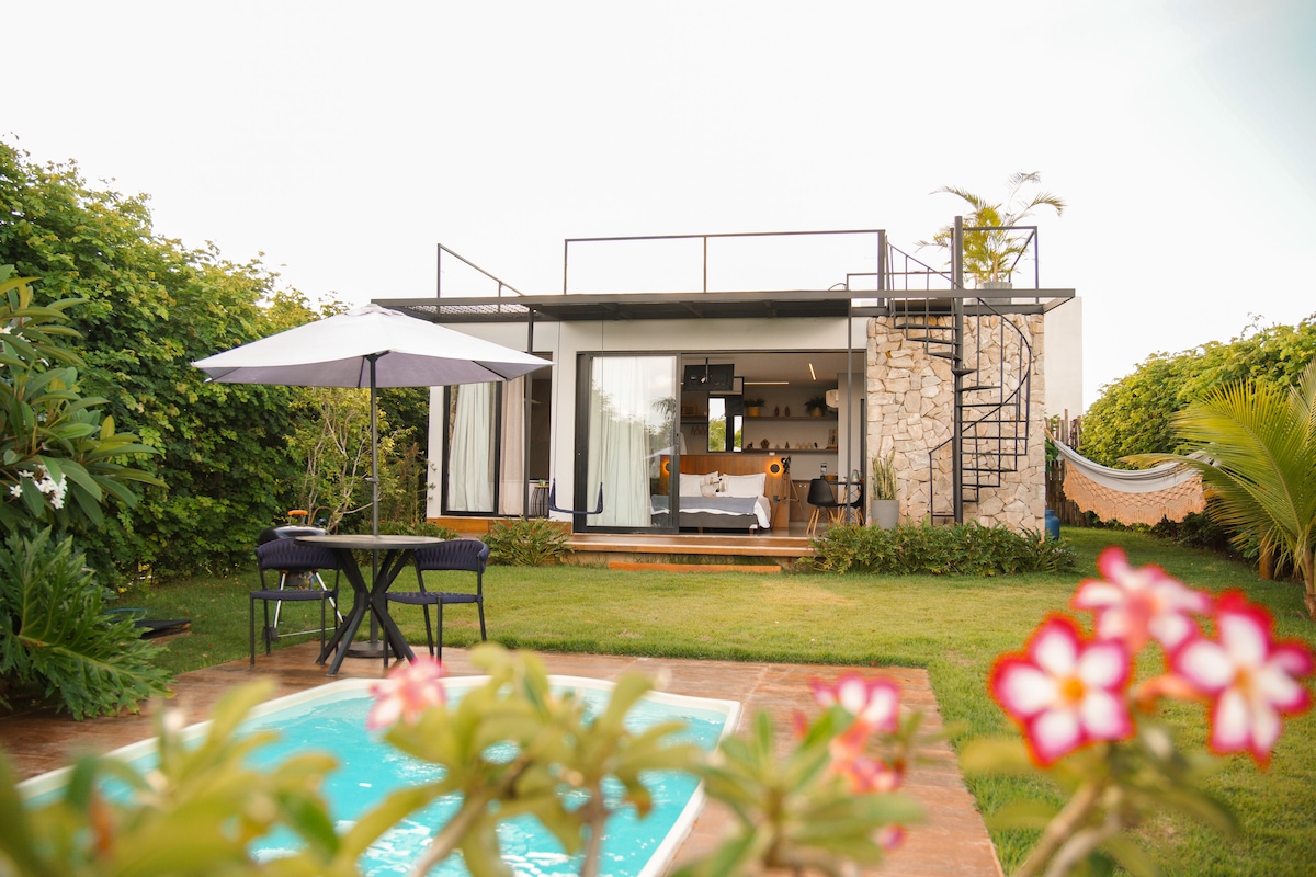 Disconnect from everything by staying under the stars, a quiet refuge in the midst of nature, ideal for those seeking rest and contact with greenery. The outdoor area has a large lawn, a pleasant swimming pool, as well as a balcony with hammocks and a living area. The house is simple and cozy, rustic roof and functional lighting. We have 3 single beds and a double bed, for more than 5 people we do not have mattresses for lodging, but there is room to put mattresses and space for camping.