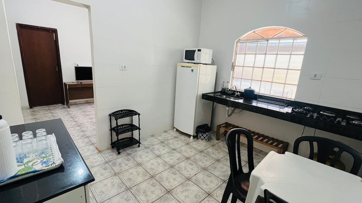 Ideal for professionals passing through the city and families who value space and a good location! 👨👩👧 Stay for up to 3 people, which can be extended to 7 guests — and 10 or more upon prior arrangement. 💰 Daily rate: • Up to 3 people - R$240 + Airbnb fees • Up to 6 people - R$380 + Airbnb fees >For a single guest, see offer!! Relax in comfort in this cool and airy house with a garage and large backyard. Paved street, in a quiet and safe neighborhood.