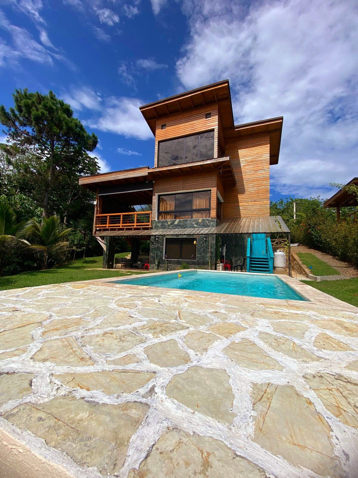 Get back in touch with nature surrounded by the lush tropical forest of Jarabacoa. This modern mountain home features soaring ceilings, natural materials throughout, contrasting textures, and access to a shared outdoor pool. The property is located a few minutes from the town of Jarabacoa and tourist attractions such as rafting, cycling trails, cliff diving, paragliding, ziplining, and other excursions. The vacation complex is conveniently located across from the most popular steakhouse in the area, and has a community pool, playground, and tennis and basketball courts. Rental of the home is for the exclusive use of guests. In case of emergency or any unforeseen issues guests will be assisted by the property manager. If requested and available, housekeeping services can be provided including meal preparation (breakfast, lunch, dinner) for an additional fee. The property is located on a holiday complex located in the area of Buena Vista, Jarabacoa. Para contacto por whattsap +1 202-476-9402. La locación del complejo vacacional es estratégica y con buen acceso, incluso hay lineas de transporte público que cruzan justo al frente de la entrada del complejo. La casa cuenta con una marquesina con capacidad para cuatro (4) vehículos. También hay un área de parqueo para visitantes con capacidad para diez (10) vehículos, a unos de 50 metros de la casa. The home has a generator in case of electrical outages.