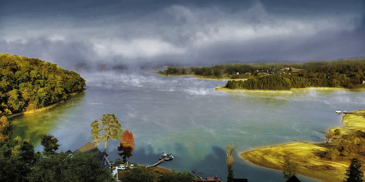In historic Dandridge, Tennessee, this storybook log cabin is waiting for you to write memories. Nestled on 6.6 acres of wooded privacy on Douglas Lake, Cozy Cove is a perfect place to relax as you view the Smoky Mountains from a spacious, wrap around deck. Douglas Lake is a premier bass & crappie fishing destination. Boats, kayaks & paddleboards welcome. Dollywood, Pigeon Forgeā, shopping, Smoky Mtn. National Park, all close. You will need to descend several steps to access the lake. See pics.