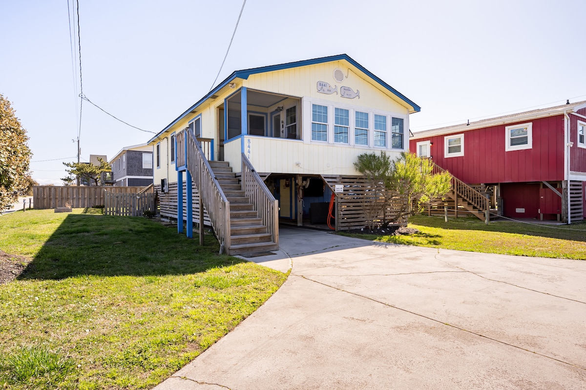 RECENTLY RENOVATED 2025! Walking distance to the beach, 2 bedrooms, 1 bathroom! The perfect vacation home for your family and couples alike. This classic cottage is just steps from the beach and wonderful local dining options. Located in the heart of Nags Head less than a mile north of Jennette's Pier! You can hear the waves from the deck and see the dunes from the kitchen. Come enjoy all Nags Head has to offer!