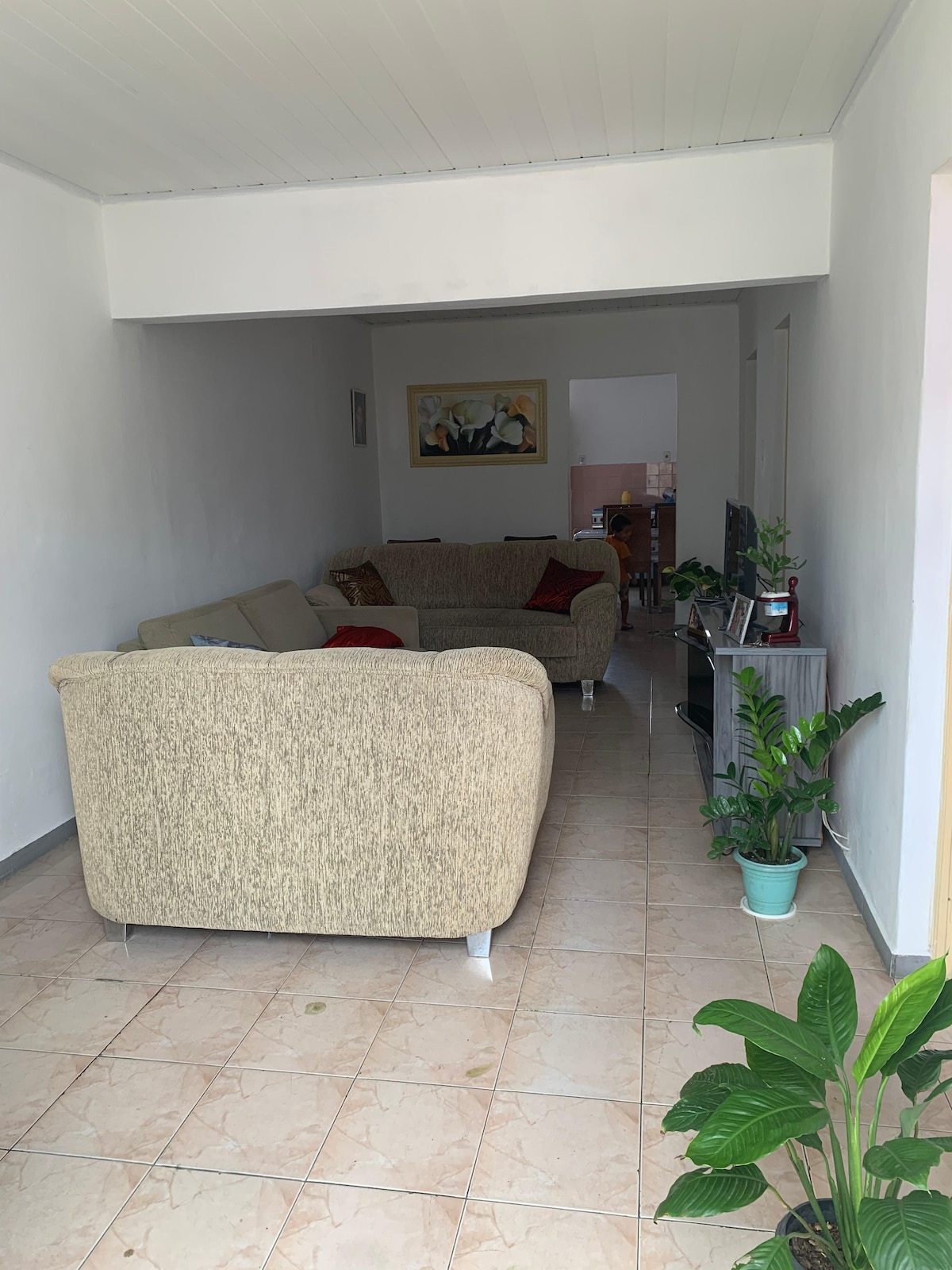 A very nice place, well ventilated and extremely comfortable. The house is a two-story house, it's upstairs, there are only 6 steps to climb. The street is very quiet and calm. Notes: It does not have a garage, but the street is very quiet and you can leave the car at the door. The house has a bedroom ready with a double bed and air-conditioning already installed and another bedroom that is without a ceiling lining, but has a door, fan and a double bed.