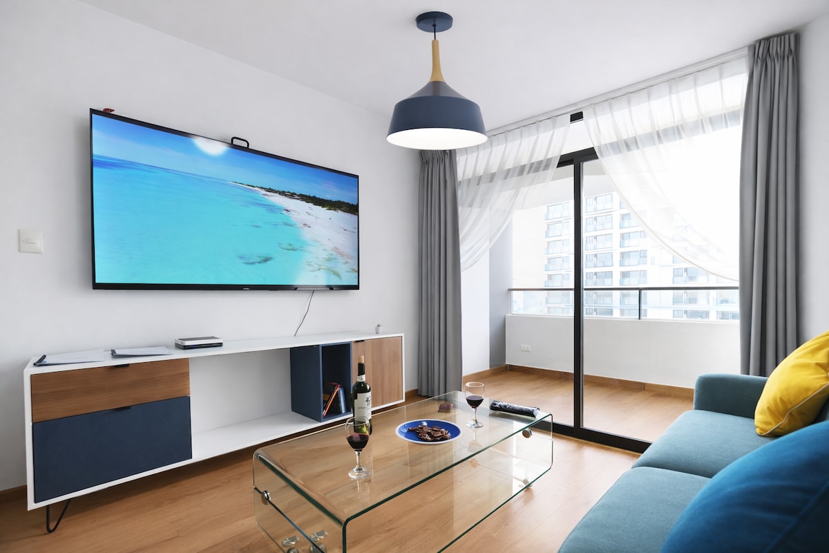 The apartment is located near the airport and 15 minutes from Miraflores by the beach circuit. You can enjoy an ocean view from all the rooms. We have transportation service and 24/7 guest support. The apartment is fully equipped, high-speed hot water, Wi-Fi, 2 55" TVs, and has a panoramic pool on the top floor, as well as a sauna and gym.
