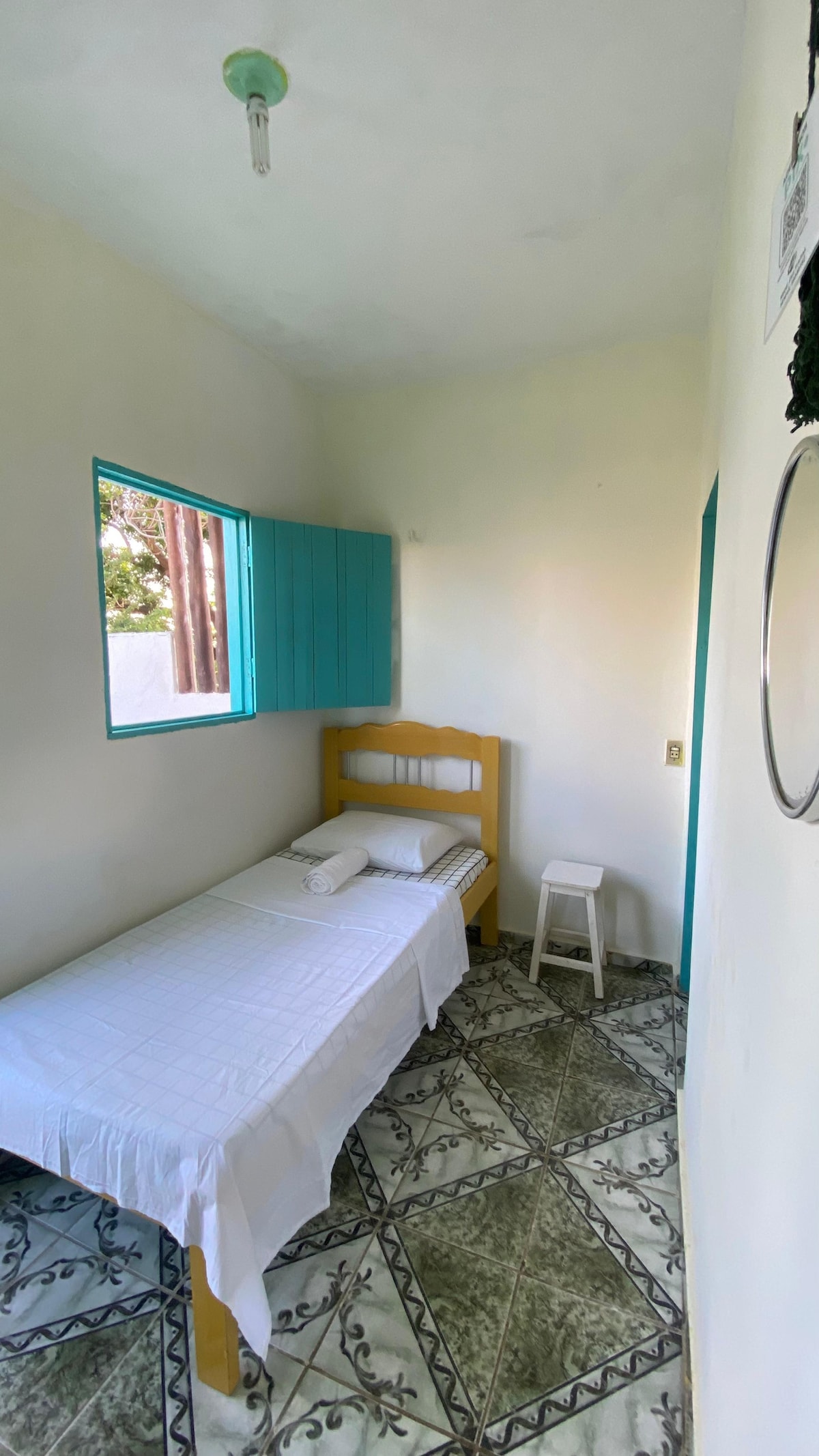 Comfortable single room in a residential inn, located just 200 meters from Jericoacoara beach. The space is simple and cozy, with a bed, fan, well ventilated and with a private bathroom outside the room. Access to shared kitchen and common areas. Ideal for those seeking tranquility and proximity to the region's beauty.