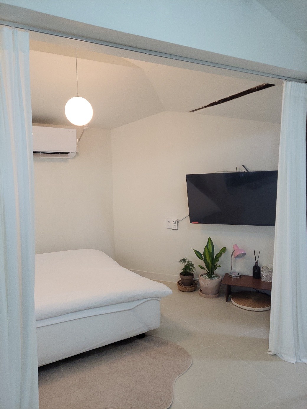We remodeled our accommodation in March I didn't have a photo ready yet, so I uploaded only one of the representative photos Please keep in mind. (We will replace the photos after remodeling as soon as they are ready.) Ocean View Stay is a traditional stone house located inside a country village in Jeju. It's right by the beach, so you can enjoy the ocean sitting in the living room, deck, and lawn yard. Inside the house, there is one guestroom with one king-size bed.
