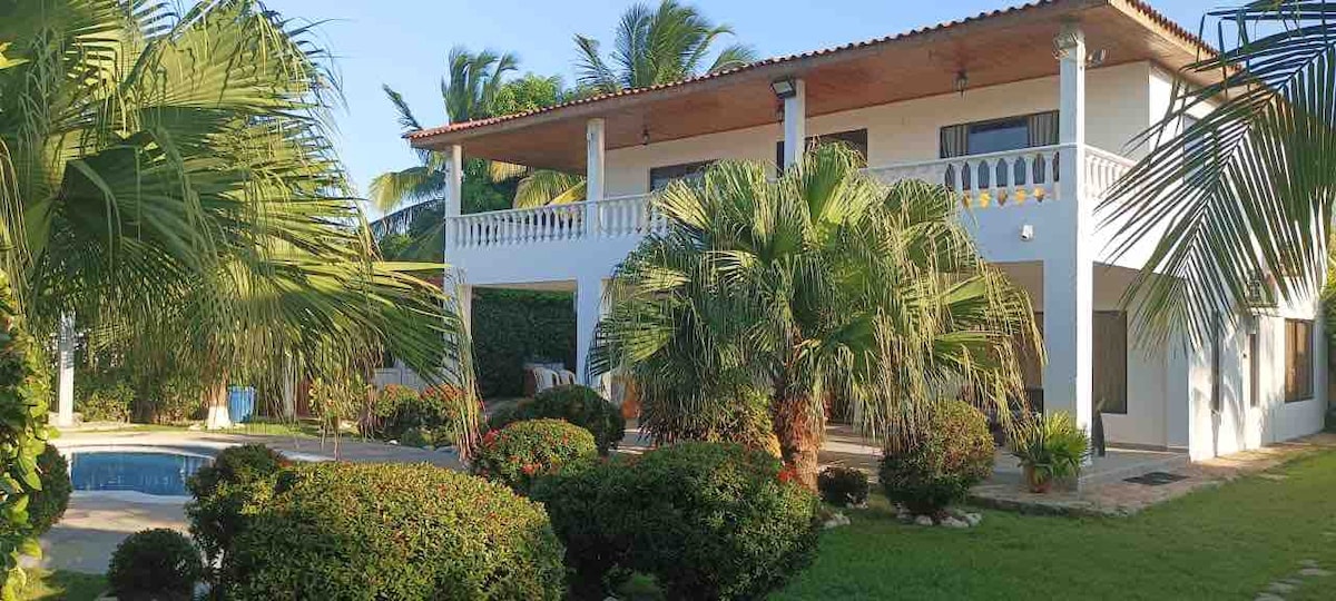 Villa las Marías; This colonial design cabin, with modern touches, gives you a luxury stay close to the beach. Natural light floods every space, creating an atmosphere of tranquility, located in a quiet area, surrounded by nature near restaurants, our cabin is the perfect starting point to explore local life or simply relax in the pool and enjoy the sun, excellent for meetings and others, it is equipped with BBQ TO SHARE a good sancocho.