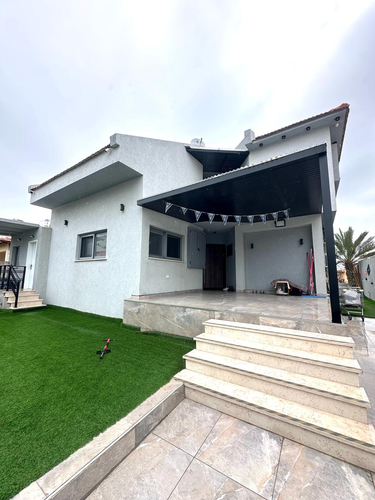 Spacious and magical holiday villa! The villa is suitable for families between 6 and 15 people. The villa has 4 closed bedrooms with air conditioning ,a double bed and some of them also have a closet in addition there is a bunk bed and more A large, spacious dining room with a table that opens up to a very large. A big, spacious living room with a Wye Faye Smart TV. Plenty of room to spend time together. Large lawn with heated indoor pool, spa Jacuzzi, seating areas, trampoline, outdoor kitchen. Suitable for the religious public. The villa has a large fully equipped kitchen including an oven, a dishwasher, a micro, a refrigerator , a water bar that keeps Shabbat, 2 hot plates, a hot water heater and more. There is an adjacent parking with an EV charger.