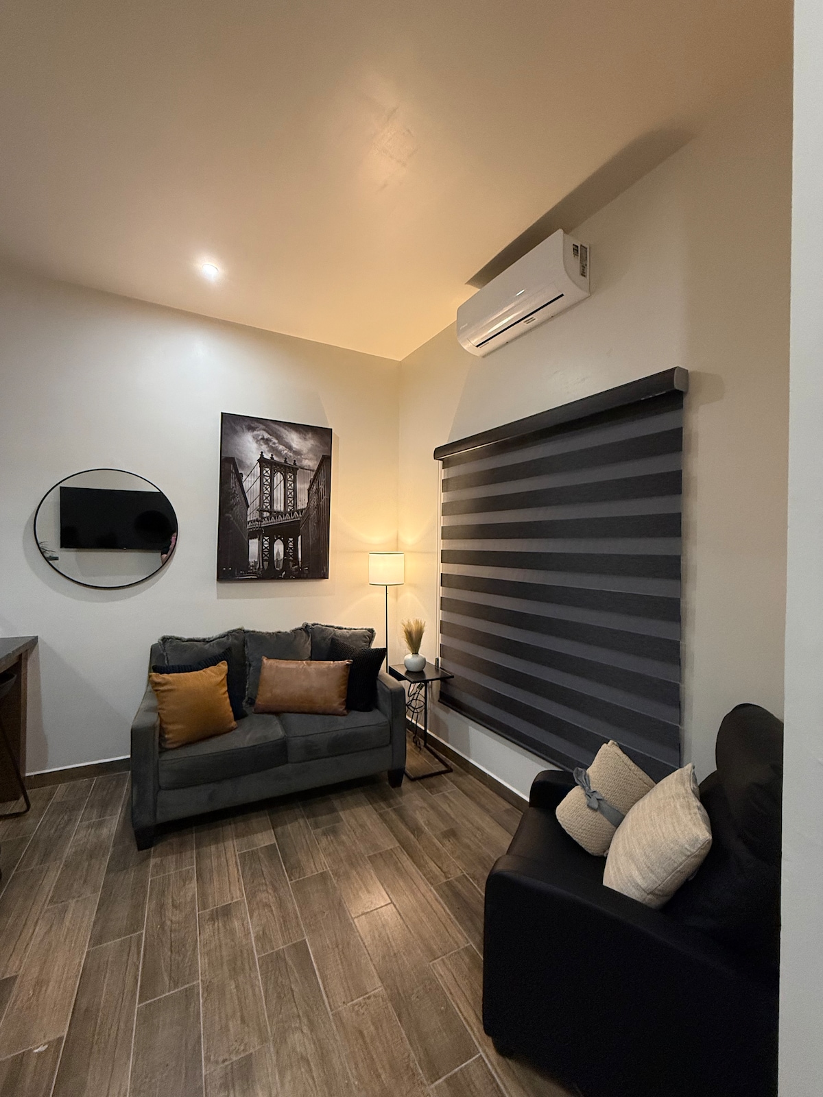 Departamento 1B (Incluye HBO MAX🟣/DISNEY PLUS🟡/AMAZON PRIME🔵 APPLE TV ⚫️) Equipado: * 1 cama KING y 1 sofacama *Boiler Eléctrico (AGUA CALIENTE 🔥) *Minisplit (frio/calor) *Microondas y licuadora *Parrillas Eléctricas *Frigobar *COCINETA (Vajilla/Cubiertos)