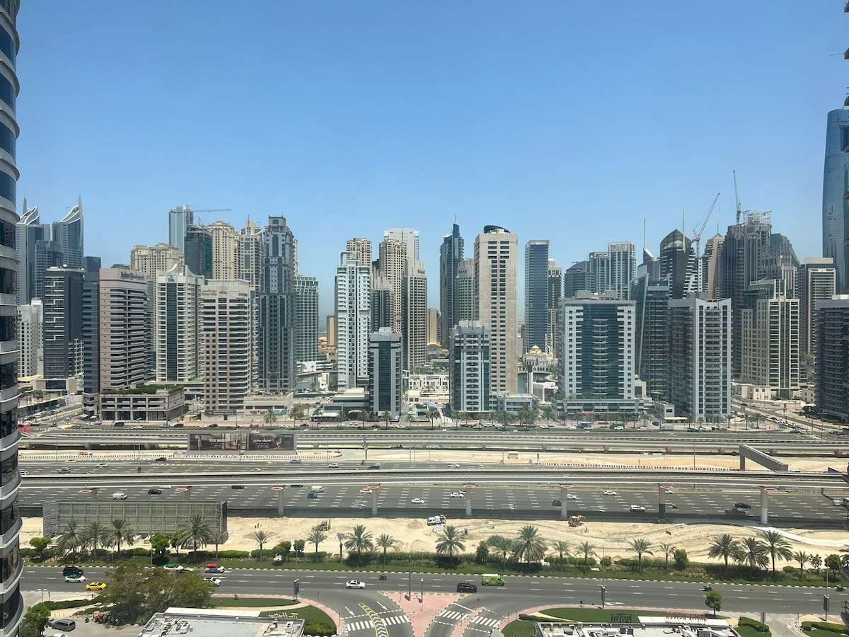 Step into your perfect getaway—a beautifully designed studio in the vibrant heart of JLT. Whether you're traveling solo or as a couple, this cozy, modern space offers everything you need for a comfortable and memorable stay. Outside your door, you're just steps away from a lively mix of restaurants, cafés, supermarkets, and salons. Their is a metro station minutes away. Whether you're here to relax or work remotely, this chic urban retreat puts the best of Dubai right at your fingertips.