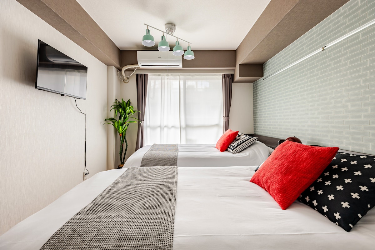 Shinjuku double bed room, 4 minutes walk to subway entrance, 7-8 minutes walk to Yamanote Line