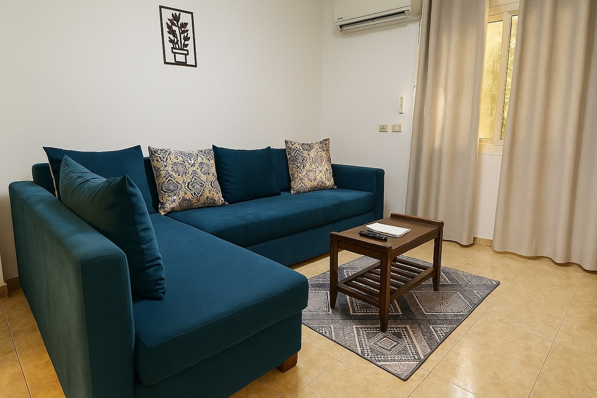 Enjoy a warm, family-friendly stay in this inviting 3-bedroom apartment located inside the prestigious City View gated community—just minutes from the Pyramids and the Grand Egyptian Museum (GEM). Overlooking landscaped gardens and calming water features, the apartment offers a peaceful retreat from the city.