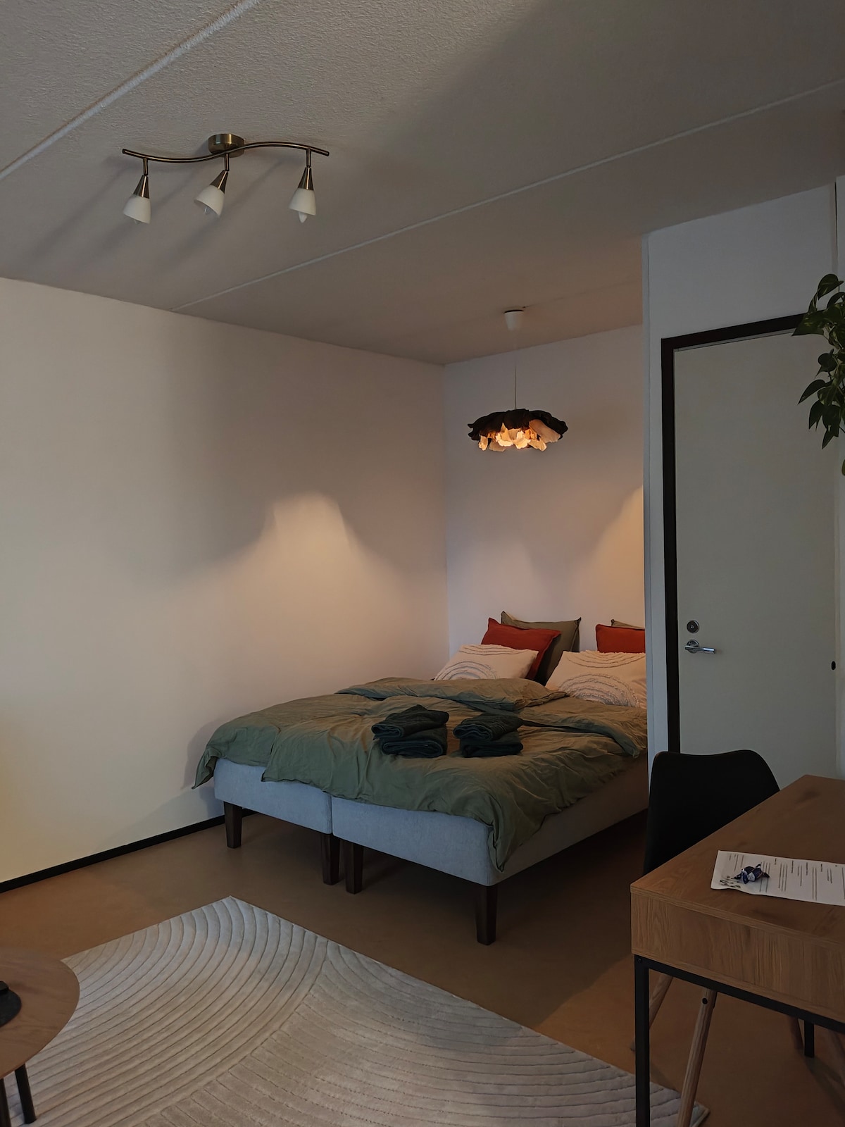 A cozy half of a duplex offers spacious and comfortable living in a beautiful uptown area. The apartment has three bedrooms, a fully equipped kitchen, a sauna, and a spacious bathroom. In addition, the apartment has free Wi-Fi access. City services are within walking distance. Downstairs is a kitchen-living room, sauna, bathroom, toilet, bright living room and one bedroom. Upstairs there are two bedrooms and a toilet with a shower cubicle. The apartment has a total of 6 beds, a sofa bed, and an extra bed.