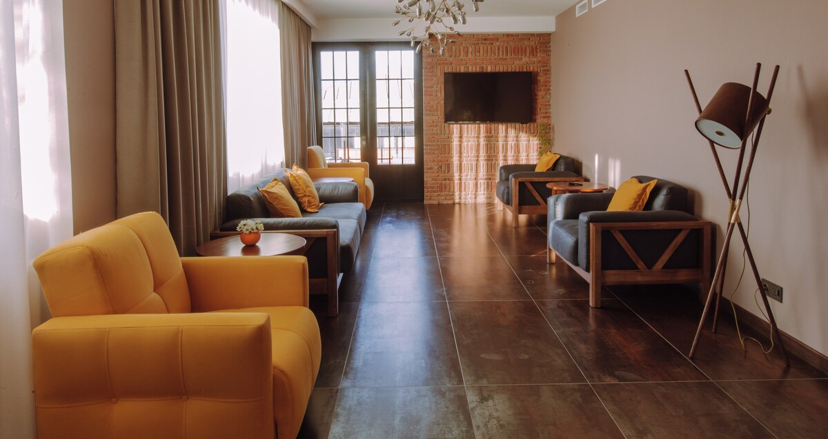 You won’t want to leave this charming, one-of-a-kind place when you visit it once. We guarantee you will be delighted and feel lucky to receive incredible service, order nourishing breakfast or dinner from our Georgian European menu at the restaurant, taste our incredible wines and enjoy Caucasian Mountain View. Plenty to enjoy: outdoor heated pool (included), sauna and jacuzzi, tour the city on electric scooters and a glass of wine next to the fire pit in the evening.