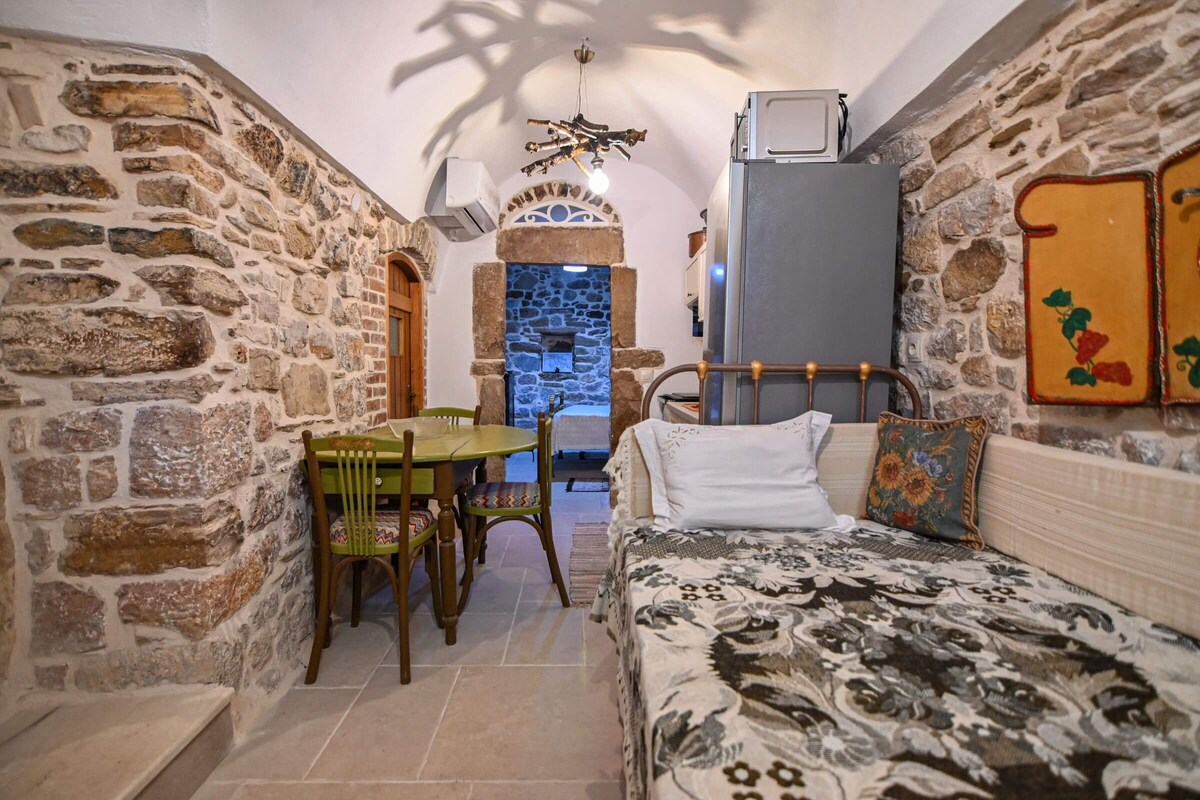 Unique stone house within the medieval settlement of Kalamota. In the southern and most sightseeing-rich part of the island, just 3 km from Komi beach and 25 km from the center of Chios.