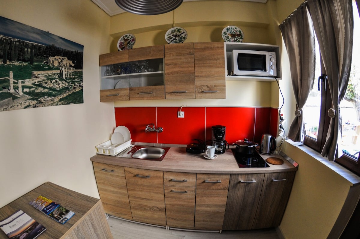 Kalymnos Studio ..just for 2 This newly renovated traditional guest house is situated in a private closed yard in the center of Pothia only walking minutes away from the alive harbor. The studio offers all modern comfort and a big sharing yard where an outdoor sitting corner invites you for relaxation. High speed WiFi. For guests with a car we offer also private parking.