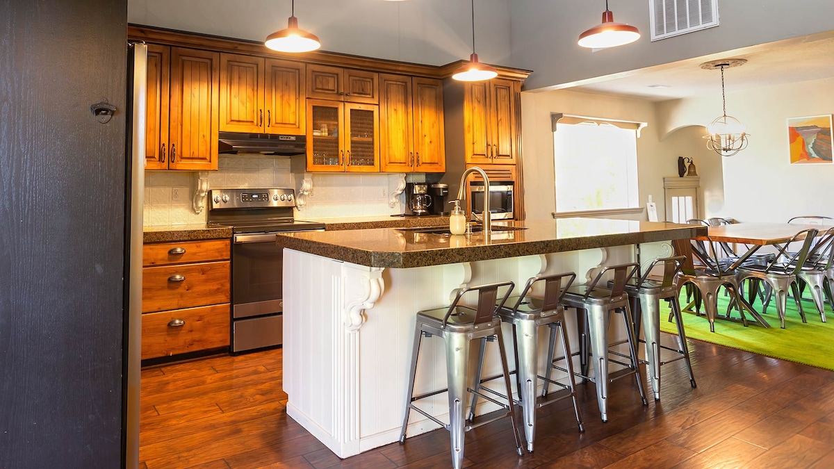This spacious 4-bedroom, 3-bath retreat sits in the heart of downtown Kanab—just 30 minutes to Zion National Park and within easy reach of Bryce Canyon, Grand Canyon North Rim, Lake Powell, and Coral Pink Sand Dunes. ✔ Walk to restaurants, coffee shops & trails ✔ Fiber WiFi + dedicated workspace ✔ Private backyard with hammock & BBQ ✔ Family-friendly games + dual refrigerators Whether you're road-tripping, hiking Zion, or exploring Utah’s Mighty 5, this is the perfect home base.