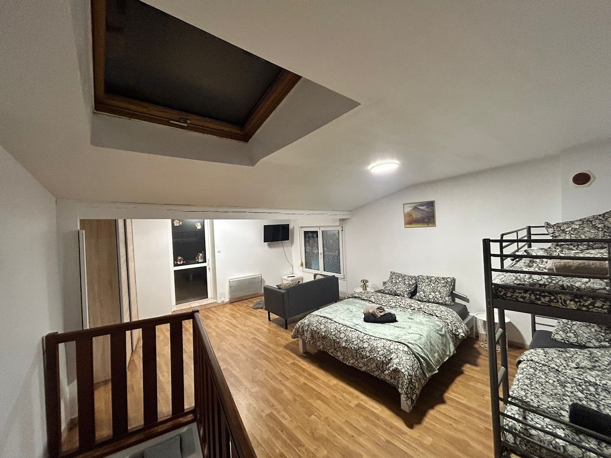 Located on the top floor of a house built in 1790, in the heart of the beautiful Alsatian city of Colmar, this duplex, completely renovated in 2018, will seduce you with its charm and comfort for a getaway for two. Its neat decoration consists of: - on the ground floor, a bathroom with walk-in shower (towels provided), a large fully equipped kitchen, a sitting area with 32" screen TV - upstairs, a 140 cm bed (very firm mattress, bed linen provided) and separate toilet