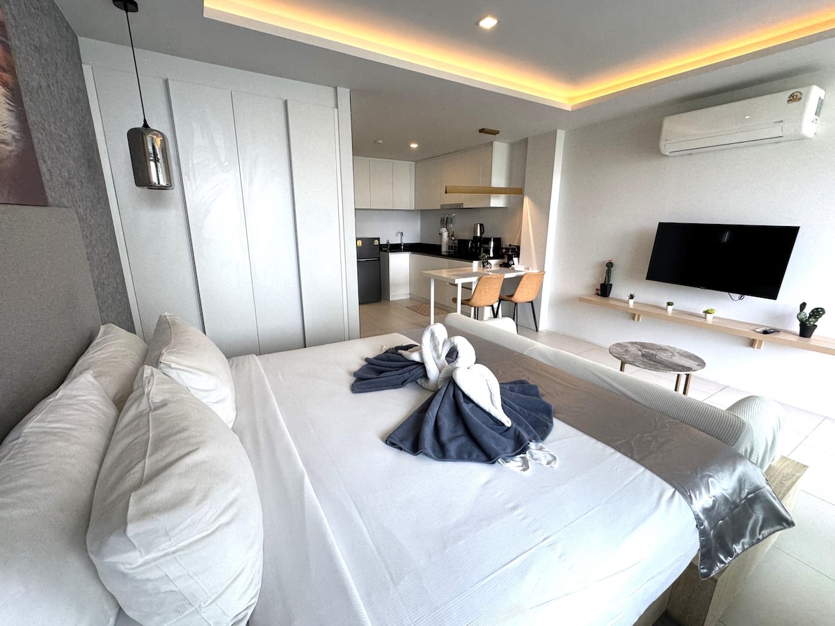 High Tide Suite offers an ocean view & stay 3-4 guests, 5-minute walk to the beach. Spacious suites boast floor-to-ceiling windows that open onto private balconies, a well-equipped kitchenette, and a large bathroom with a bathtub. After a day at the beach, relax in steam room & sauna include a games room within the building. Included: Utility Fee / Required refundable security deposit 5,000THB cash upon check in & refund upon check out (If no any damage) Every 7 days cleaning & change linen.