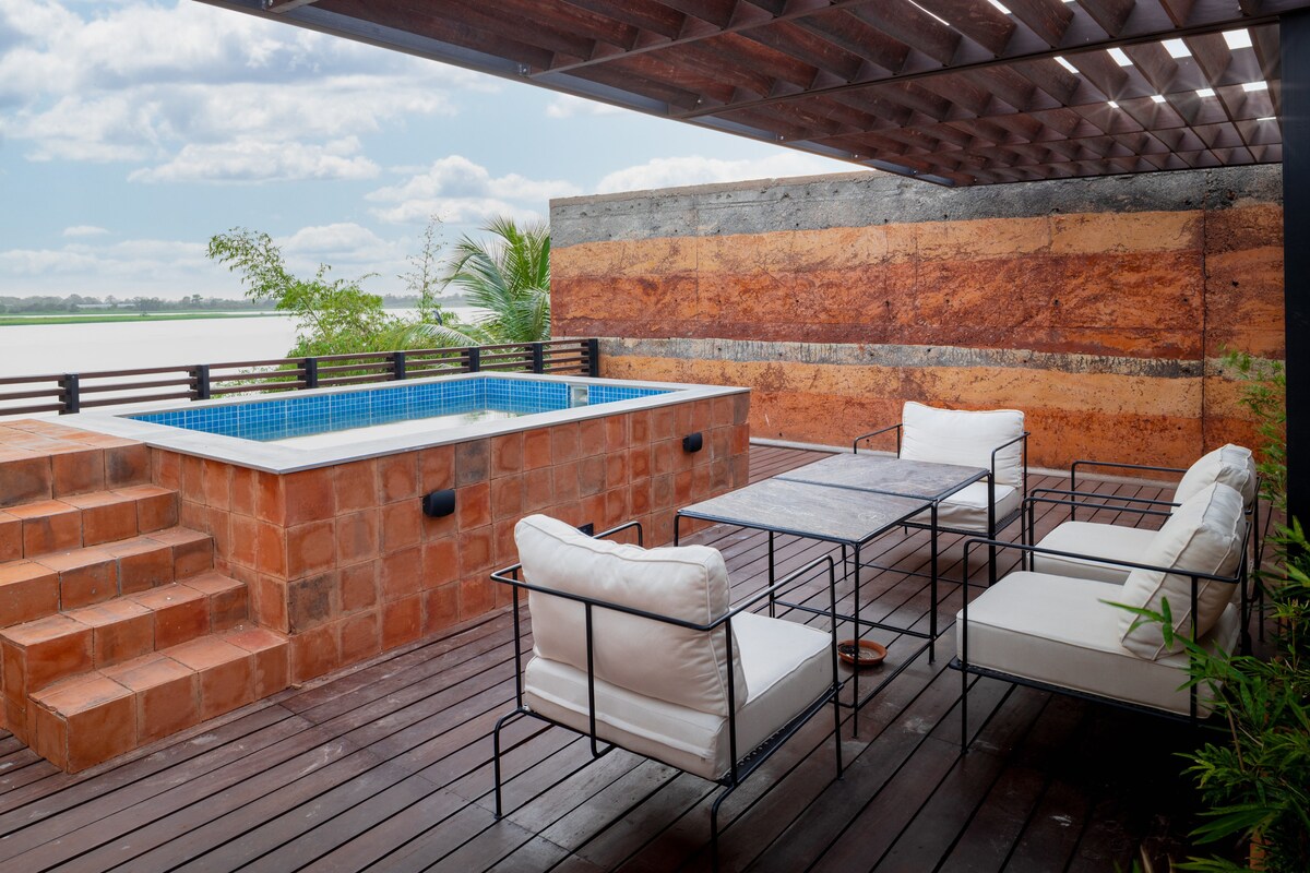 Bright, tranquil and thoughtfully designed for rest or remote work. Overlooks lush gardens and the Volta River. Includes private bath, kitchenette, and shared access to a pool, outdoor lounge, and chef-curated meals.