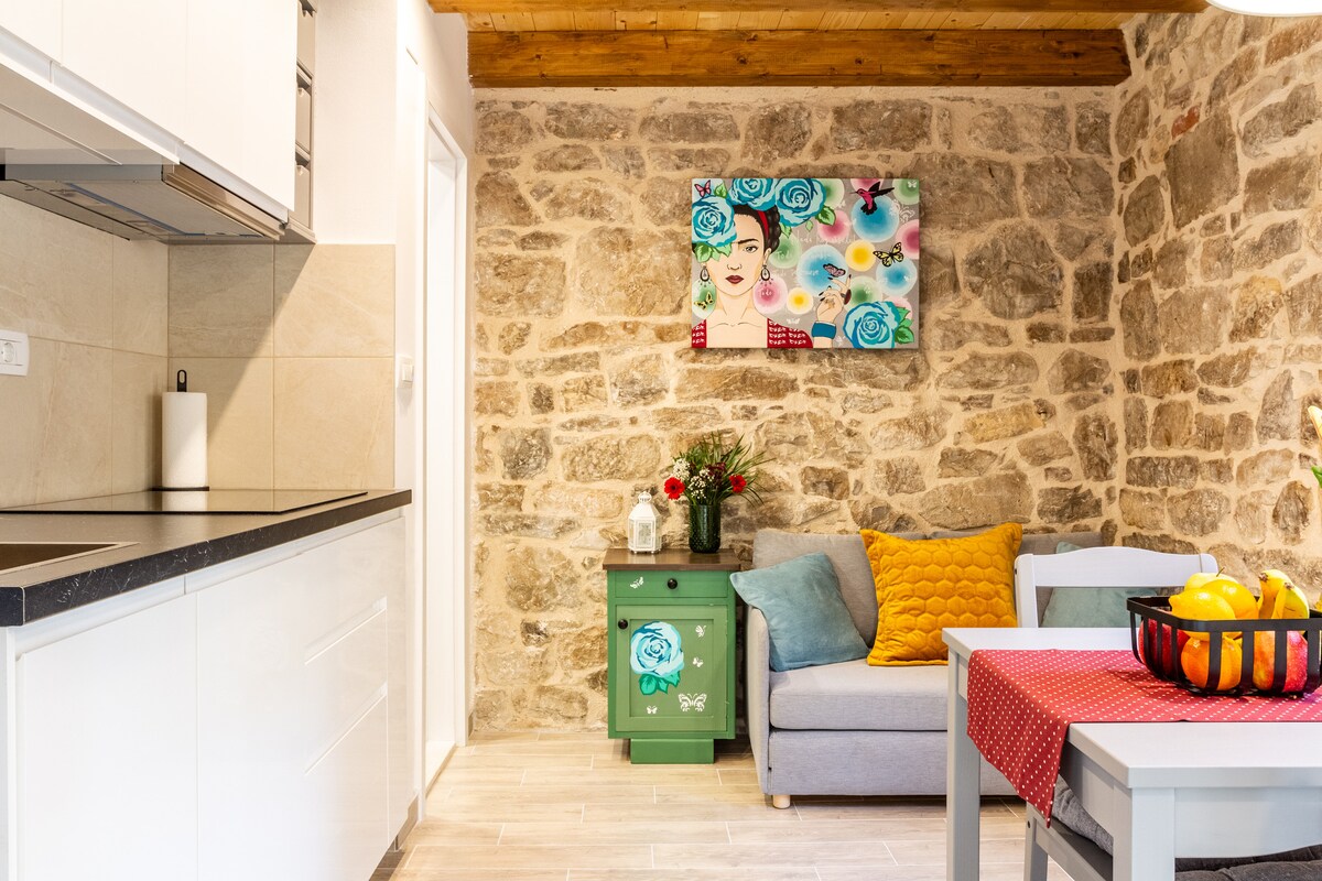 Welcome to Stone Whisper, a place where history whispers through stone walls. Located in a protected 16th-century stone house, this carefully decorated apartment offers a unique blend of Dalmatian tradition and modern comfort. It is located just a few minutes' walk from the sea and the promenade. It is perfect for those looking for peace, authenticity and a good connection with Split, Trogir and the surrounding area. Enjoy walks along the coast, hiking trails of Kozjak or relaxing in the silence of the old Dalmatian settlement.