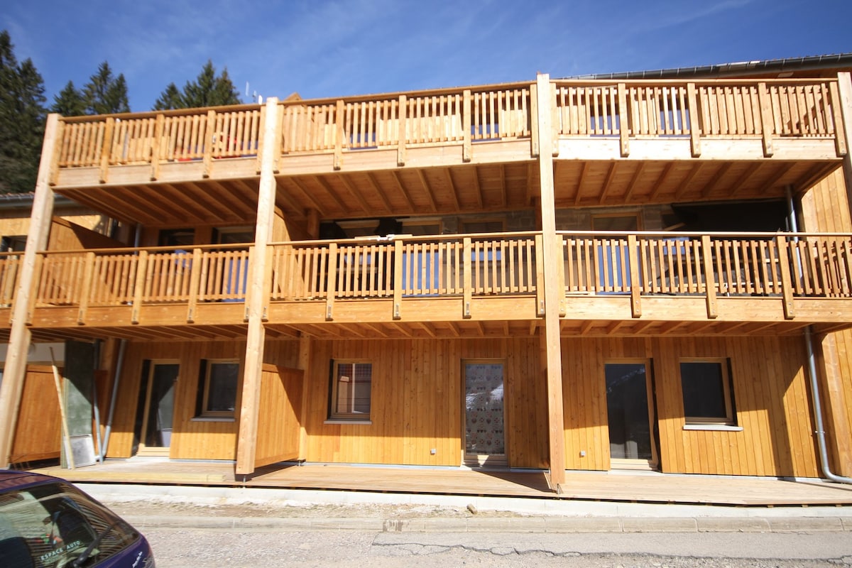 Studio located on the 3rd floor facing the mountain and overlooking the ski slopes, facing the resort. Park your vehicle and enjoy the ski lifts, toboggan runs, mountain bike trails, lakes and numerous hiking trails The studio is fully equipped for 4 people with a double bed and a sofa bed. Raclette and fondue sets are provided. Duvets and pillows are available. Smart TV with Netflix and Molotov. Linens and cleaning are included.