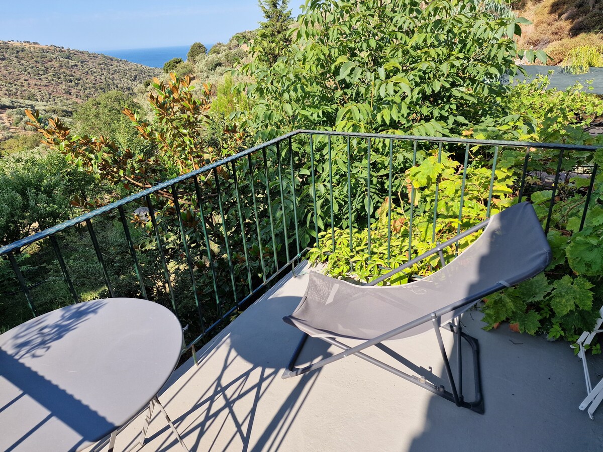 Its a renovated traditional farm house of1900,rustic in a spacious land with oaks,olive,fruit trees,beautiful nature(streams u can swim,mountain hiking,sea,all walking distance,great food (fish,baked goat,vegan)! The house is in 2 levels of 40m2 each, open space,2 fire places 2 double beds,2.sofa bed,2single beds,sleep under stars double bed, hammocks,kitchen &wc.Autonom photovoltaic syst full lighting,charg devices, fridge, no Wifi, gas kitchen,authentic,peaceful romant.spirit,meditation!