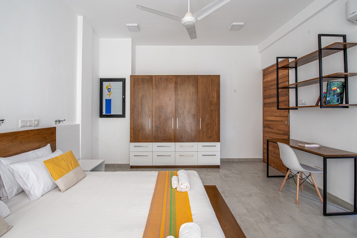 An early morning flight, late arrival, or exploring Sri Lanka’s top beach towns, just 10 mins (5km) from Bandaranaike International Airport. Unwind and reconnect in our cozy, spacious escape, ideal for relaxation or adding a touch of paradise to your trip. Plus, you'll be within reach to Sri Lanka's many cultural and natural wonders. This spacious up stair unit with Wi-Fi & AC is perfect for couples, friends, or solo travelers seeking a comfortable, convenient, and affordable private space