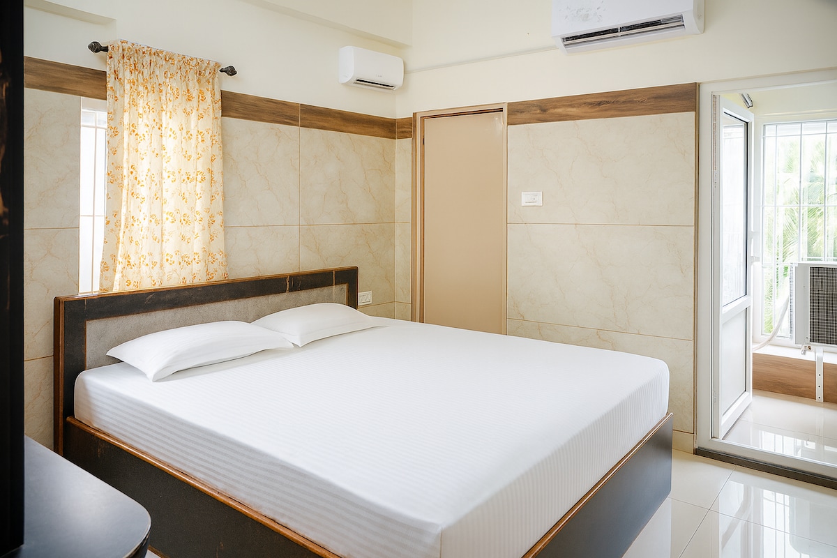 Park view, calm and silent, relaxing environment, 3bhk flats & AC availability is on a first-come, first-served basis, and cannot be guaranteed for every booking.