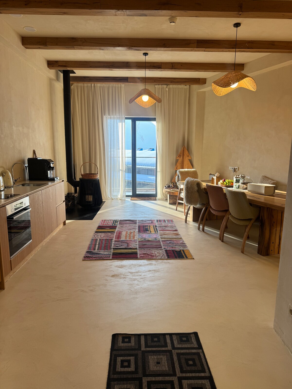Make yourself at home in our new 2-bedroom apartment in Kazbegi. The apartment consists of 2 large bright bedrooms with a comfy king-sized beds and fully-equipped kitchen.