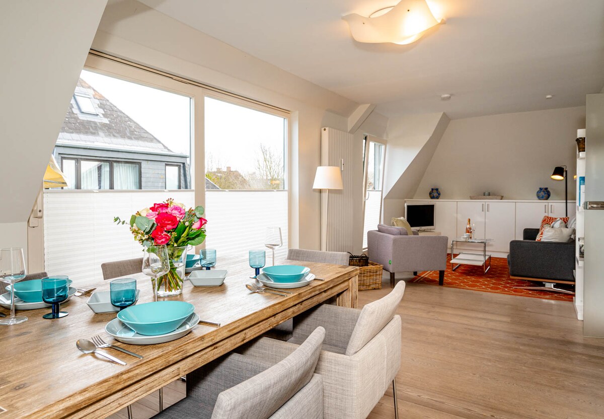 Welcome to our cozy apartment in the Tenne! Not far from the train/bus station (within walking distance). From here you can walk to the city center with lots of restaurants and shops as well as the wonderful beach. Old Westerland with the beautiful village church is also a few minutes away! Our apartment is located in a beautiful Frisian house. You will find it on the second floor. It covers two levels. The upper sleeping area can be reached via a staircase (due to the location in the attic, you have little ceiling height). The living and dining area is spacious and flooded with light. Open ceiling beams and cozy furnishings invite you to linger. Free Wi-Fi and a parking space for your car is available behind the house.