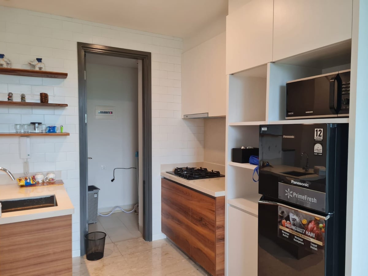 Welcome to our cozy ✨2-bedroom apartment ✨ nestled in the heart of BSD City. Perfect for families or small groups, our space offers a comfortable and inviting atmosphere for your stay. As you enter, you'll be greeted by a spacious living room featuring modern furnishings and plenty of natural light. The fully equipped kitchen is ideal for preparing delicious meals, with a dining area where you can enjoy them together. We look forward to hosting you and ensuring you have a memorable stay!