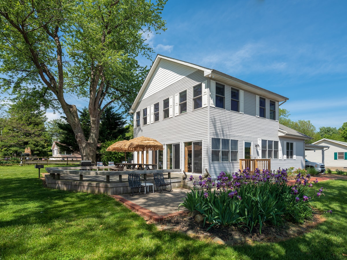 Waterside mid-century modern home, perfectly appointed. Join with colleagues, family, and friends. Paddleboard, roast marshmallows, watch fireworks, take a hot tub or team building. Our "Flight Deck" is perfect for meetings and retreats. Breathtaking, peaceful grounds with an abundance of space. Approximately 2800 SF sits on a 3/4 acre property - perfect for lawn games and zip lining. 20x20 furnished deck + dock Mayo Beach and Beverly Triton 1 mile away. Within an hour of the DMV