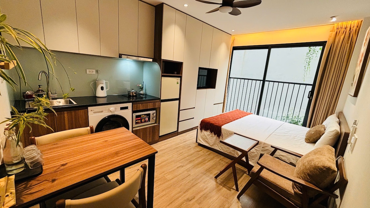 Căn hộ 1 phòng ngủ phong cách Bắc Âu - Nằm ngay trong Hà Nội và thuận tiện đi tới sân bay. Có: ✯ Thang máy. ✯ Tự nhận phòng/trả phòng (Hỗ trợ nhận phòng vào đêm muộn), ra vào 24/24. ✯ Rộng 70 mét vuông với ban công ngập tràn ánh sáng tự nhiên. ✯ Giường lớn và êm ái. ✯ Phòng tắm riêng khép kín có bồn tắm. ✯ TV thông minh với Netflix & Wifi tốc độ cao . ✯ Có điều hòa, tủ lạnh, máy giặt và sấy, bàn làm việc...