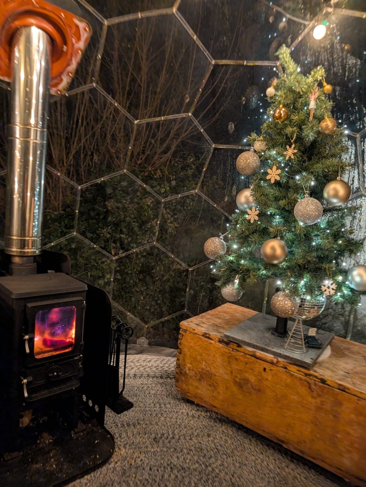 Ideal for a cosy Christmas escape Penlea Retreat is our romantic shepherds hut. It is set in its own large private enclosed garden overlooking National Trust farm land in one of Cornwalls most beautiful fishing villages. - Amazing geodesic relaxing and dining dome with cosy woodburning stove- be 'outside' whatever the weather! - 5 minute walk to the beach and pubs (10 uphill minutes back) -Wood fired hot tub- relax under the stars -Ensuite shower room with flushing toilet