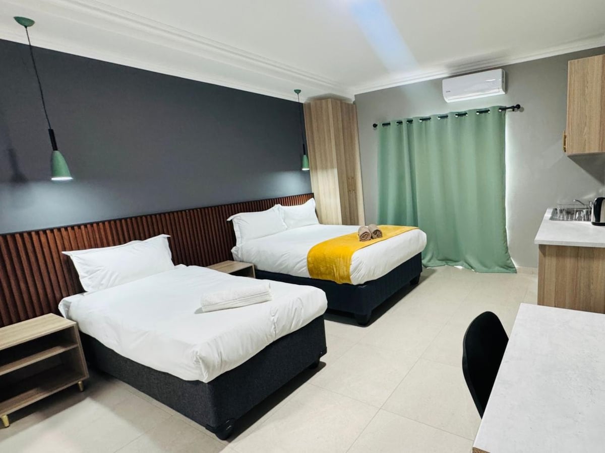 The Family Room is fitted with a king-size and a single bed. The en-suite bathroom has a shower, basin, and toilet. The room boasts air-conditioning, a TV with DStv, free Wi-Fi, a wardrobe, coffee/tea facilities and a bar fridge.
