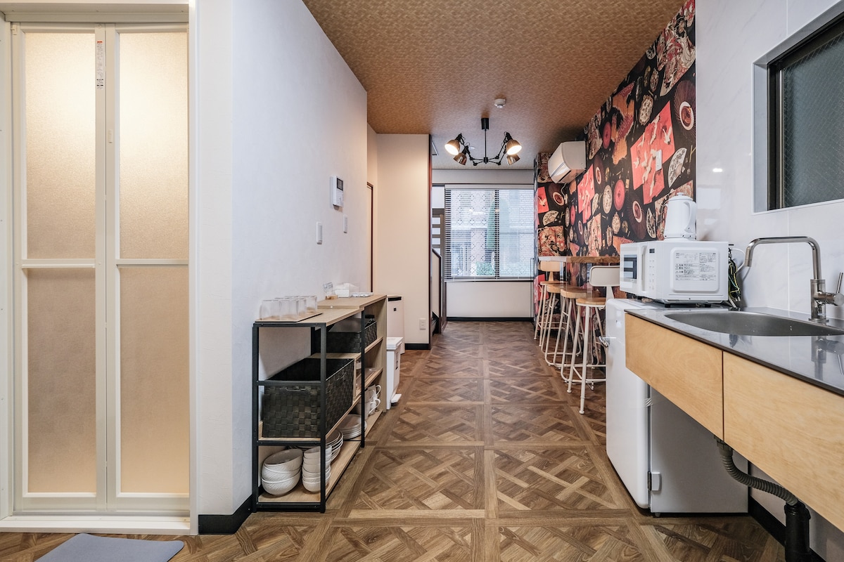 A perfect Tokyo base with both the calm of a traditional ryokan and modern comfort 🚉 Near central Tokyo 5min to Kikukawa, 7 min to Sumiyoshi. Direct trains to Shinjuku, Shibuya, Akihabara, Skytree, Asakusa, Ryogoku. 🍣 Food heaven Tonkatsu, sushi, ramen, tempura, gyoza… Countless local restaurants await. 🛏 Tradition & modern A rare mix: tatami-style room + modern room. Includes 75” TV&games. 🌉 View & cherry blossoms From the 7F room, enjoy night views, Skytree, and spring sakura by the river.