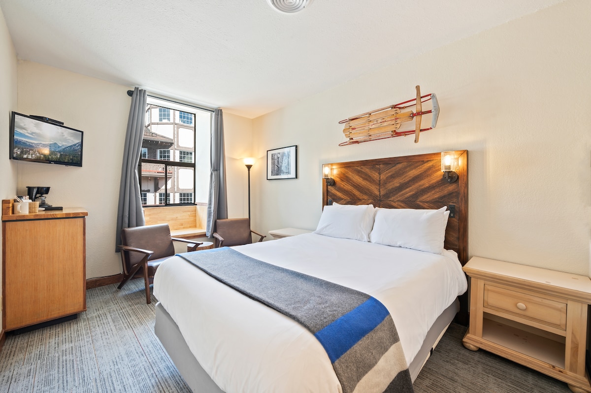 Stay in our award-winning Hotel Leavenworth, right in the heart of the downtown Bavarian village! This Cozy Queen studio is perfect for 2, offering a queen bed, electric fireplace, and modern comforts. Enjoy views of Front Street or the mountains. Your perfect base for exploring Leavenworth's charm, with shops and dining just steps away. One free parking spot included. Dog Friendly.