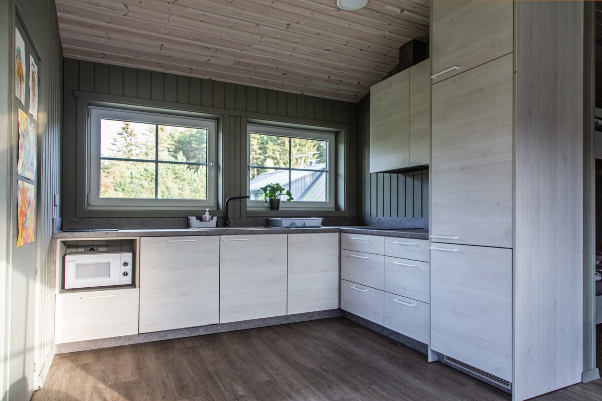 A breathtaking view unfurls from the spacious living-room window, beautiful in every season. The living room flows into the kitchen and a lounge area—perfect for family time, friendly get-togethers, and team offsites. It’s wonderfully quiet in spring, autumn, and winter. Reliable Wi-Fi and ample table space make it great for workations, small workshops, and project sprints. The homestead is wrapped in greenery and forest, with one of the loveliest panoramas of Lake Plateliai right out front.