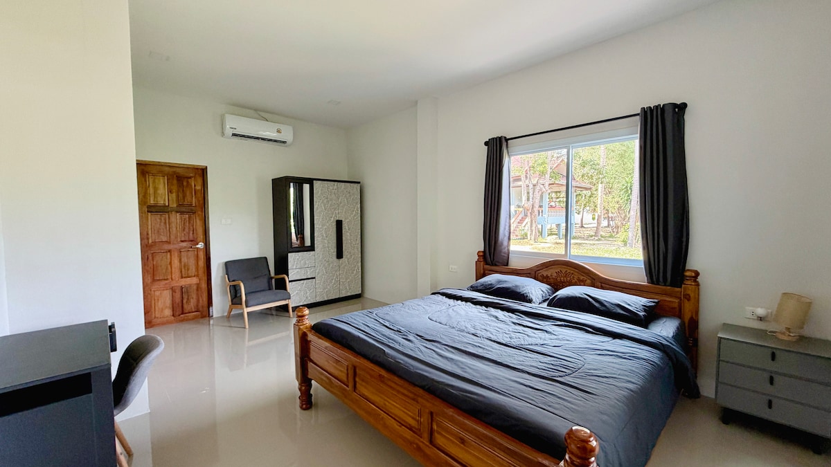 Itâs 1 big house with 2 balcony. Stay in a serene picture of a secluded oasis amidst the bustling center of Tong Sala. The proximity to both the beach and a large supermarket adds convenience, while the privacy and tranquility of being nestled by the lake create a truly unique living experience. It a perfect blend of convenience and serenity. Wake up in comfortable Artist bedroom with the lake view Relax on the veranda, watching fish swim by and varanas glide past. Your perfect retreat awaits