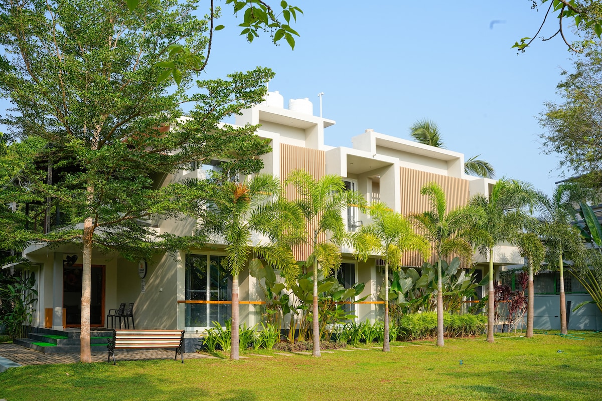 A private hillside retreat surrounded by rolling hills, cool mist, coffee and arecanut plantations, and tranquil views of a nearby lake. Designed for guests who enjoy comfort, privacy, and a touch of luxury in nature. The home features elegant interiors, comfortable bedrooms, a stylish living area, a home theatre, mini bar, pool table, and gym, and a fully equipped kitchen. Large windows open to misty mornings and calm hill views, while the pool offers a refreshing escape throughout the day.