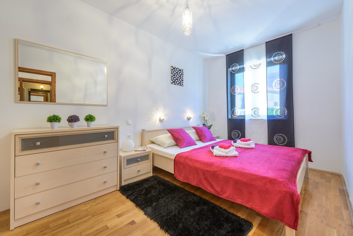 Apartment is situated on the ground floor of our family house. Located 500 meters from the sea, 8 km from Dubrovnik Airport, 12 km from Dubrovnik and 5 km from Cavtat. With two bedrooms, three bathrooms, kitchen, spacious living room and beautiful sea view terrace you have everything what is needed for a beautiful vacation. Further, high speed internet, SAT TV, safe depozit box, washing machine, barbecue & private parking are free of charge for all our guests.