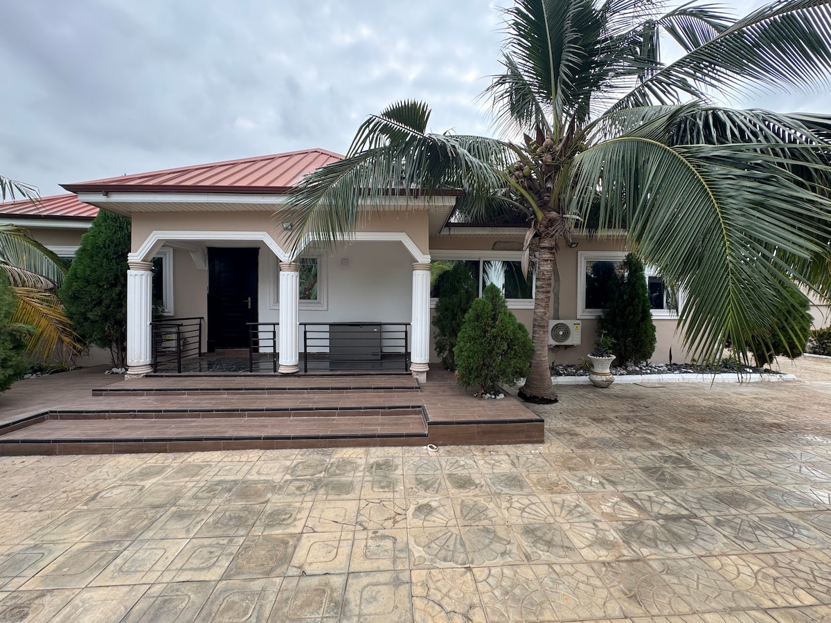 Lets make memories with this unique and family-friendly place. The property boasts of ample space open floor Cathedral HIGH ceiling Beam modern ranch design with a rooftop patio. The property is secured with High electric fence with automatic gate opener. Each bedroom has its own private full bathroom and a guest washroom. All tared roads from Airport to the villa (35 minutes drive) in the Botanical Gardens of Aburi, very close to the National Fire Service.